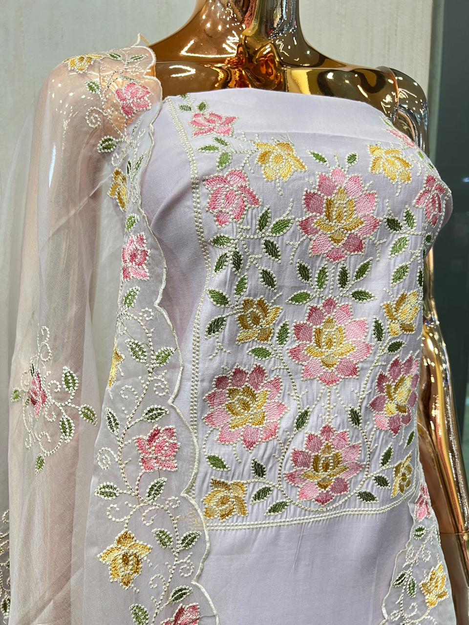 Organza churidar set with machine embroidery