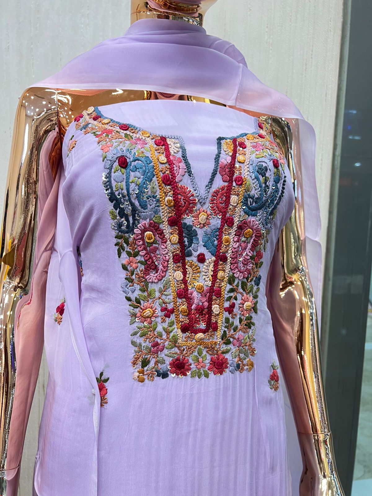 Crushed organza churidar set with aari work