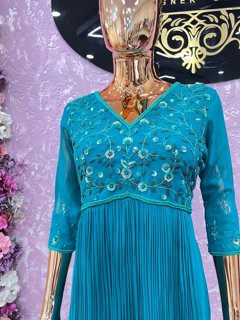 Dyeable georgette kaftan with sequence
