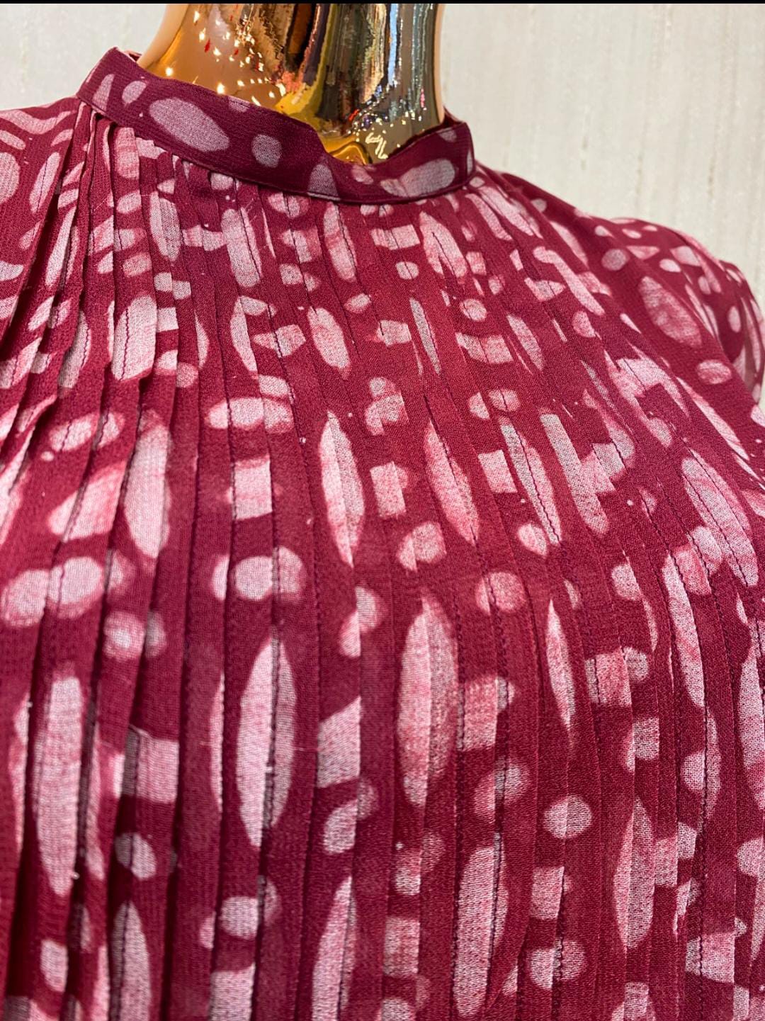 Georgette gathered pintuck kurti with batik print