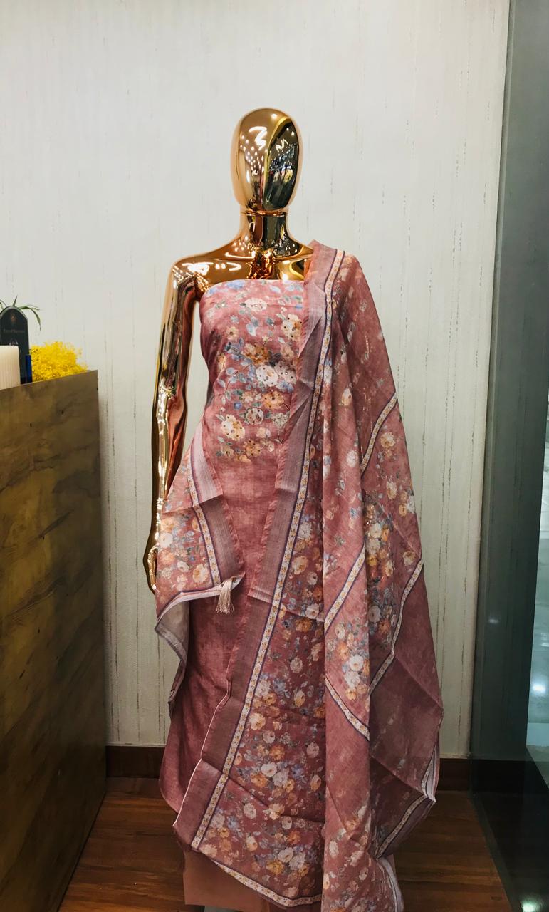 Semi linen floral printed set