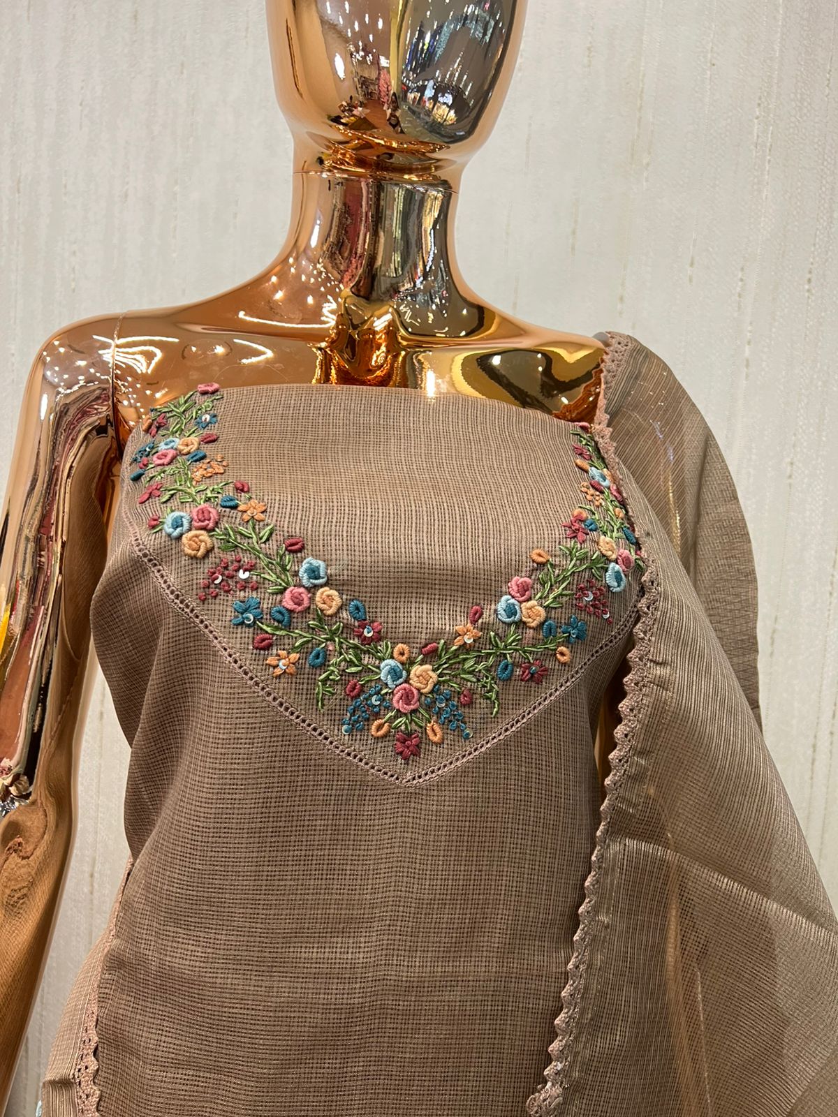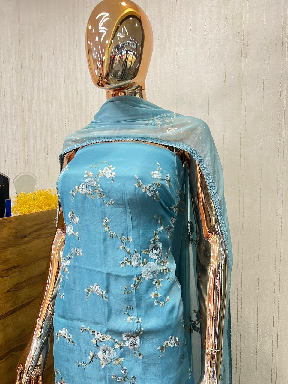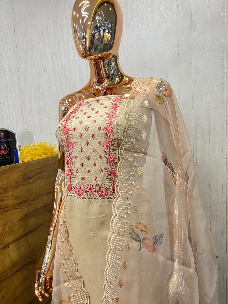 Organza material set with hand embroidery