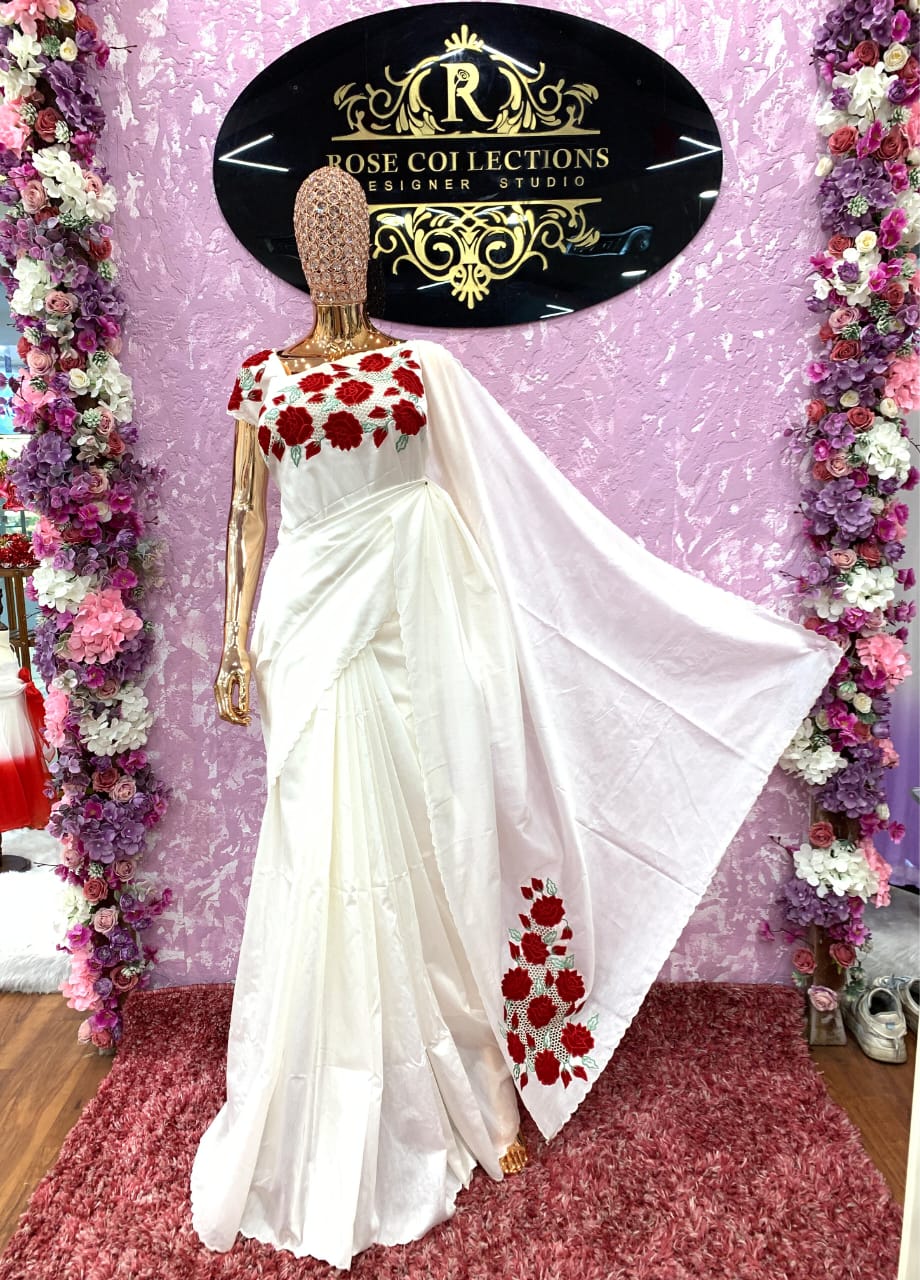 Chanderi saree with applique and cut work